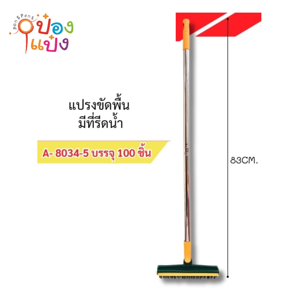 85. (B102-S8034-5) แปรงขัดพื้น+รีดน้ำ 83CM. สีเขียว-เหลือง ด้ามสแตนเลส 1*100