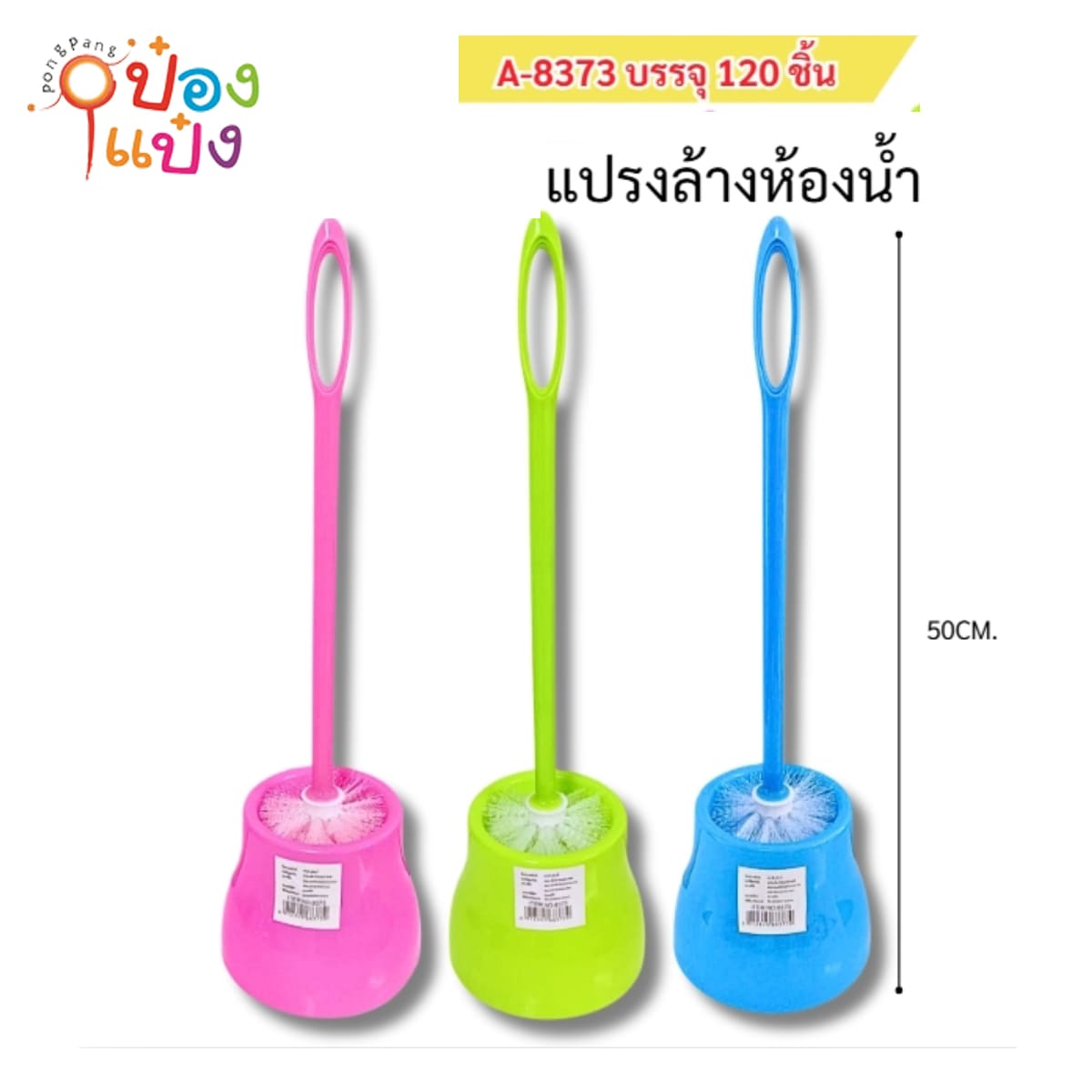 90. (B349-S8373) แปรงขัดโถสุขภัณฑ์ด้ามพลาสติกหัวกลม+ที่เก็บ 50CM 1*120
