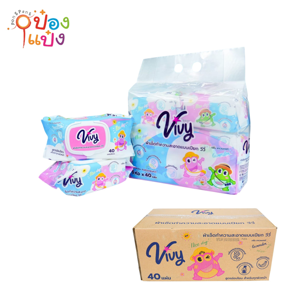 391. (A105-PO1012207) ทิชชู่เปียกวีวี่ vivy กลิ่นลาเวนเดอร์ 40แผ่น (1x36)**ขายยกลัง 540 บาท**