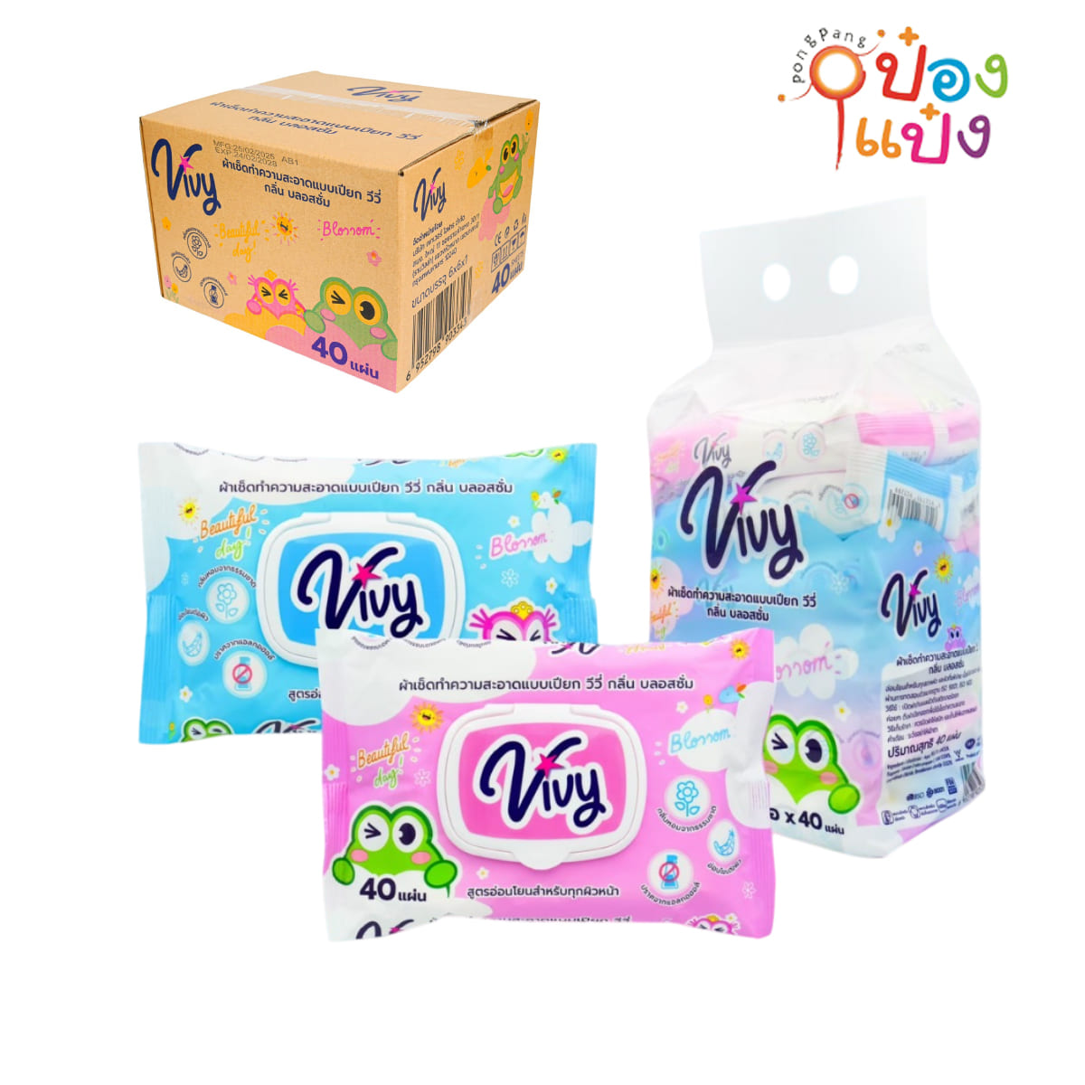 390. (A105-PO1012208) ทิชชู่เปียกวีวี่ vivy กลิ่นบลอสซั่ม 40แผ่น (1x36)**ขายยกลัง 540 บาท**