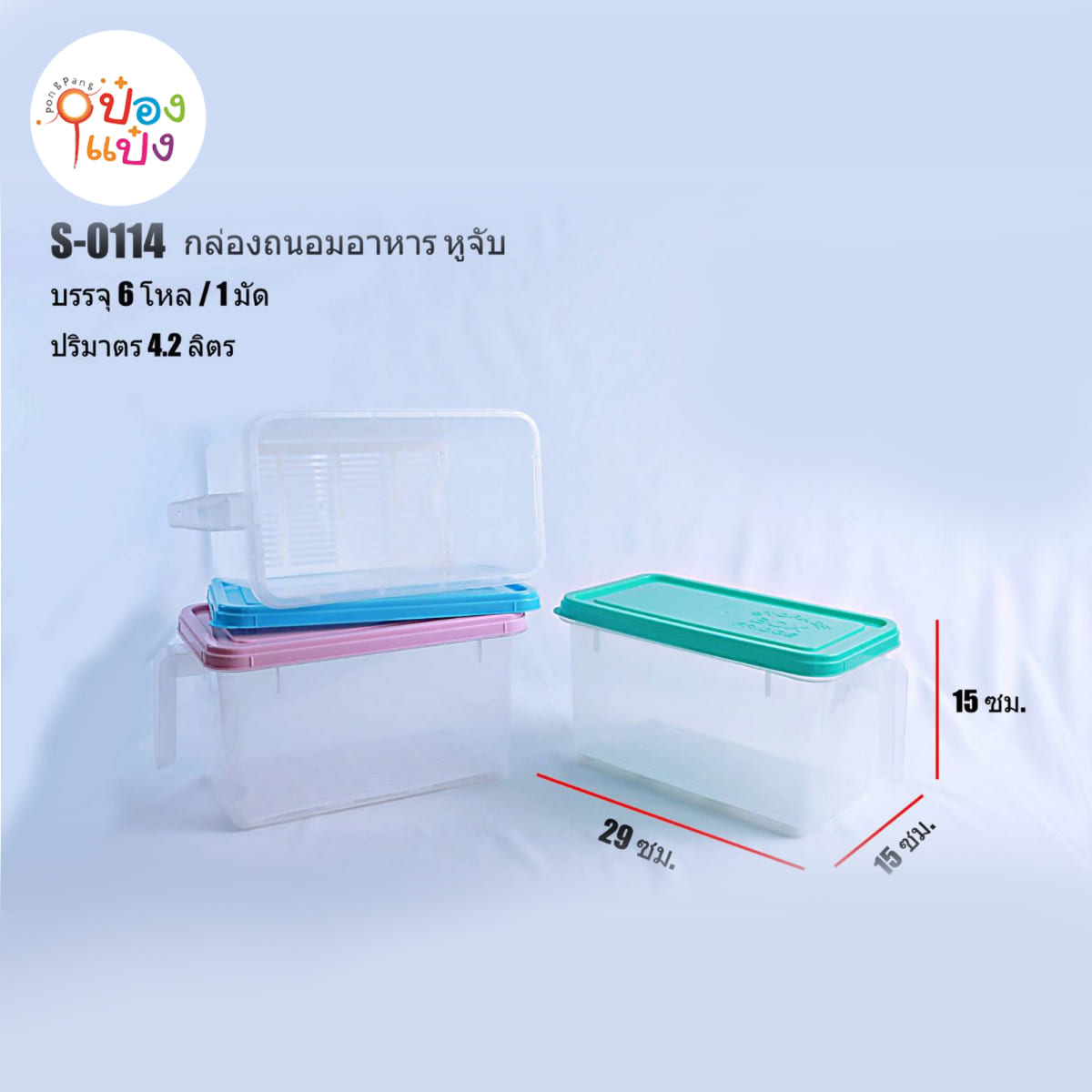 928. (A128-S0114) กล่องพลาสติกเก็บอาหารในตู้เย็นในครัว BOX FRIDGE 26x15x14.5CM ฝาสีมีที่จับ 1*12