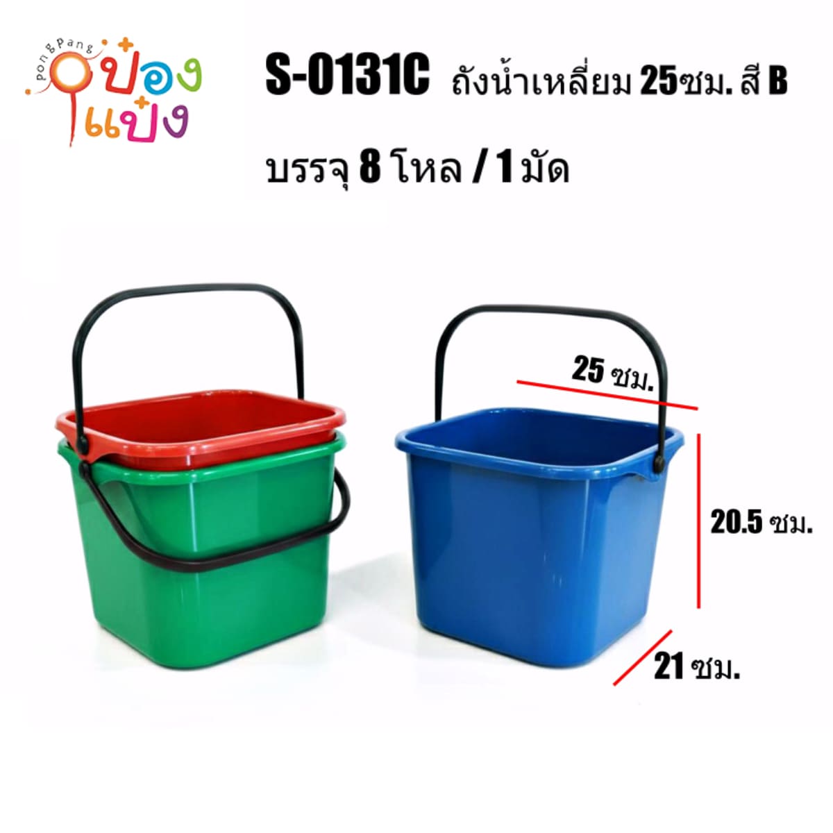 957. (A128-S0131C) ถังเหลี่ยม ขนาด 21x25x20.5CM คละสี 1*96