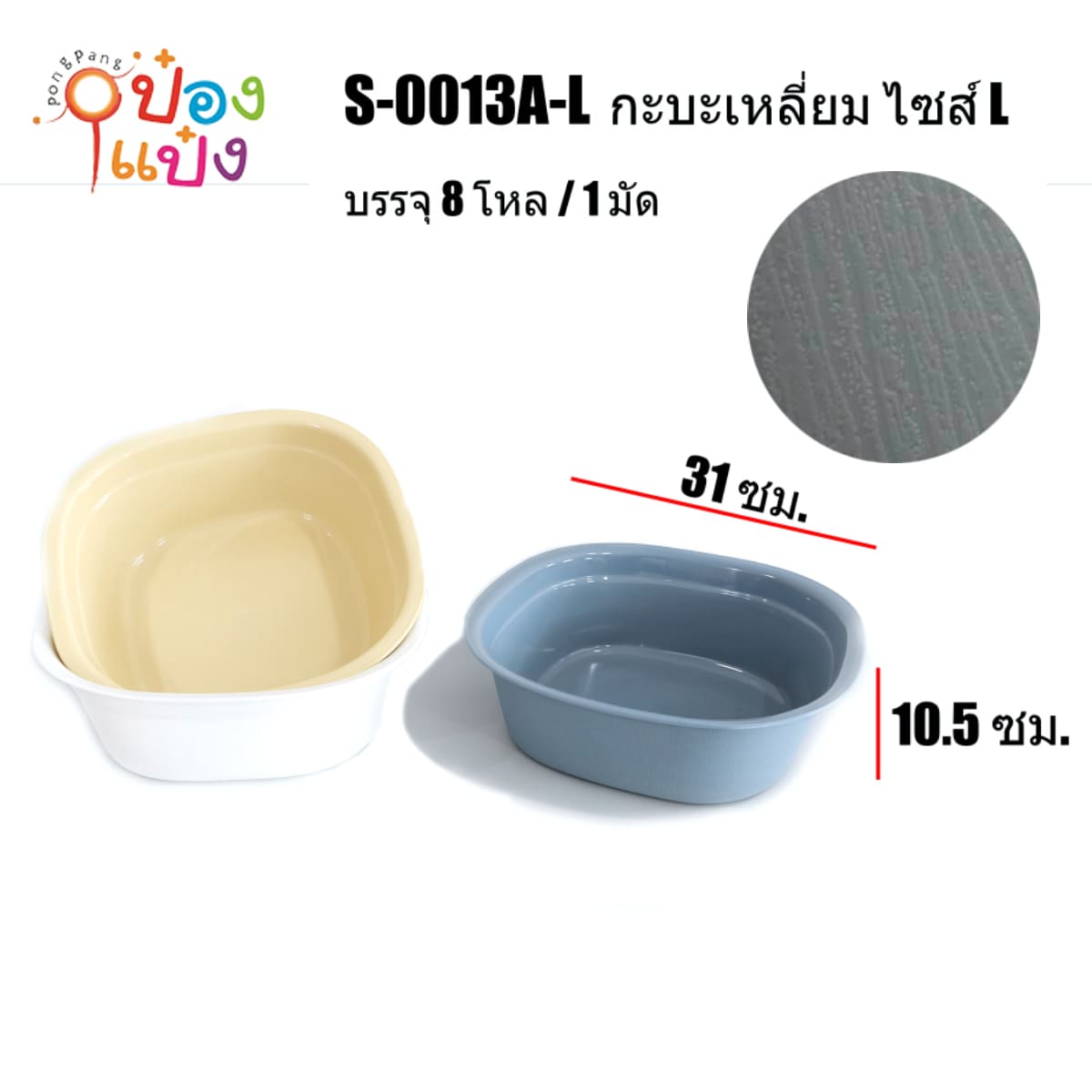 938. (A128-S0013AM) กะละมังเหลี่ยม M 1*120