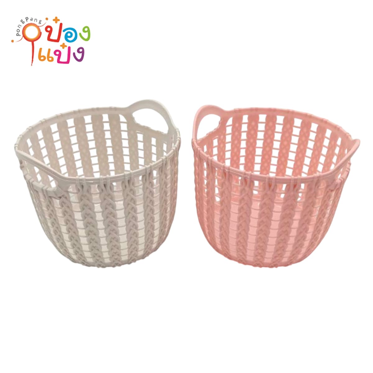 153. (B402-WY301) ตะกร้า กระจาดขาว พลาสติกกลม ใส่ผลไม้ 10นิ้ว พิมพ์ลาย