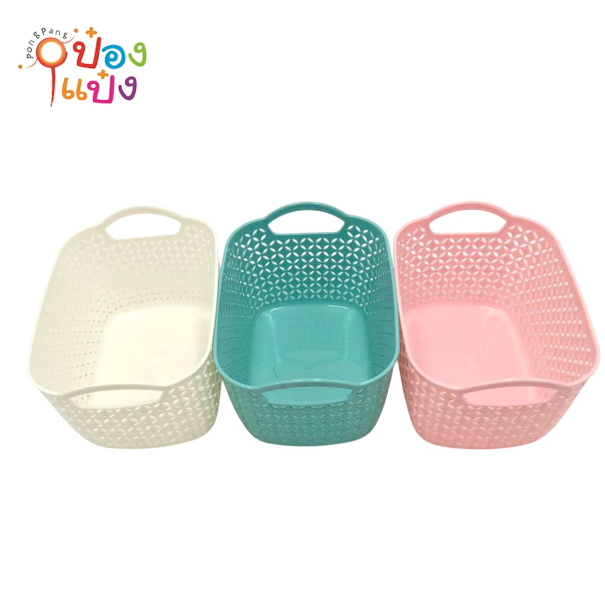 155. (B402-WY302) ตะกร้า กระจาดขาว พลาสติกสี่เหลี่ยม ใส่ผลไม้ 11นิ้ว พิมพ์ลาย