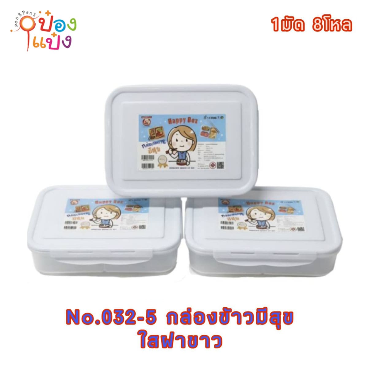 526. (A136-CC032-5) กล่องข้าวมีสุขตัวใสฝาขาว 1*96