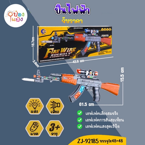 200. (A208-ZJ92185) ปืนยาว ปืนไฟฟ้า ปลายกระบอกเสียบมีด 61.5x15.5CM มีเสียง 1*48 ***78.5บาท/ชิ้น ขั้นต่ำ 6ชิ้น