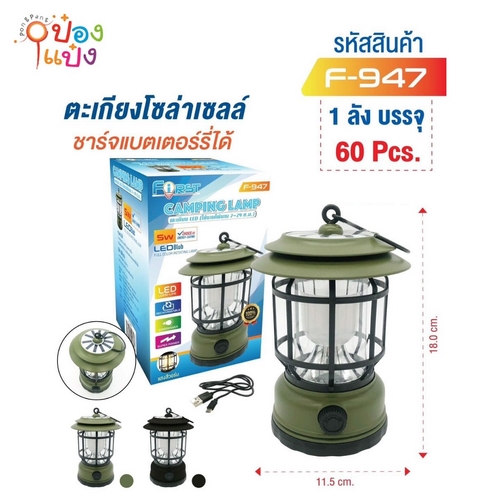 172. (B202-F-947) ตะเกียงโซล่าเซลล์ LED 5W สีวอร์ม ชาร์จแบตเตอรี่ได้ 1*60 **123.50/ชิ้น ขั้นต่ำ 3ชิ้น