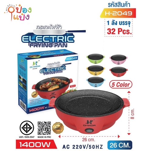 114. (B204-F-H2049) กะทะไฟฟ้า 1400W 26CM คละสี 1*32 **150บาท/ชิ้น ขั้นต่ำ 3ชิ้น