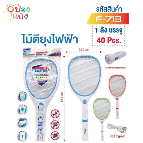 398. (B205-F-713) ไม้ตียุง ชาร์จ UBS-TypeC 23x56.5CM 1*40 **105บาท/ชิ้น ขั้นต่ำ 3ชิ้น