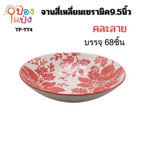 1288. (A111-TP-TT4) จานสี่เหลี่ยมเซรามิค9.5นิ้ว
