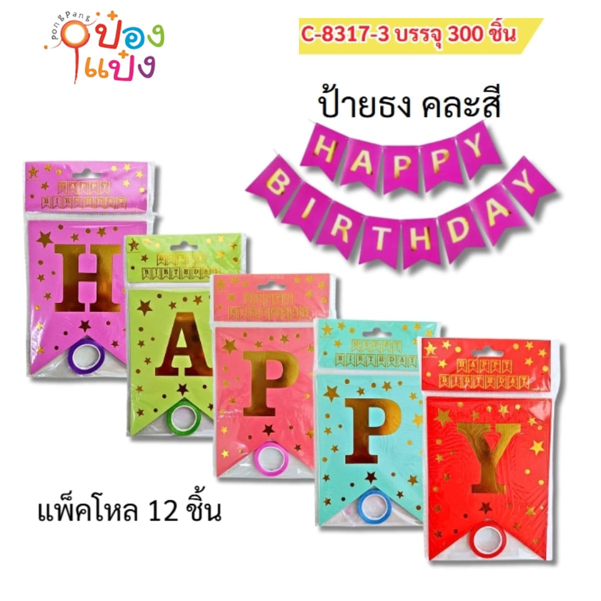 2905. (204-SG-GT089) ป้ายธง วันเกิด คละสี