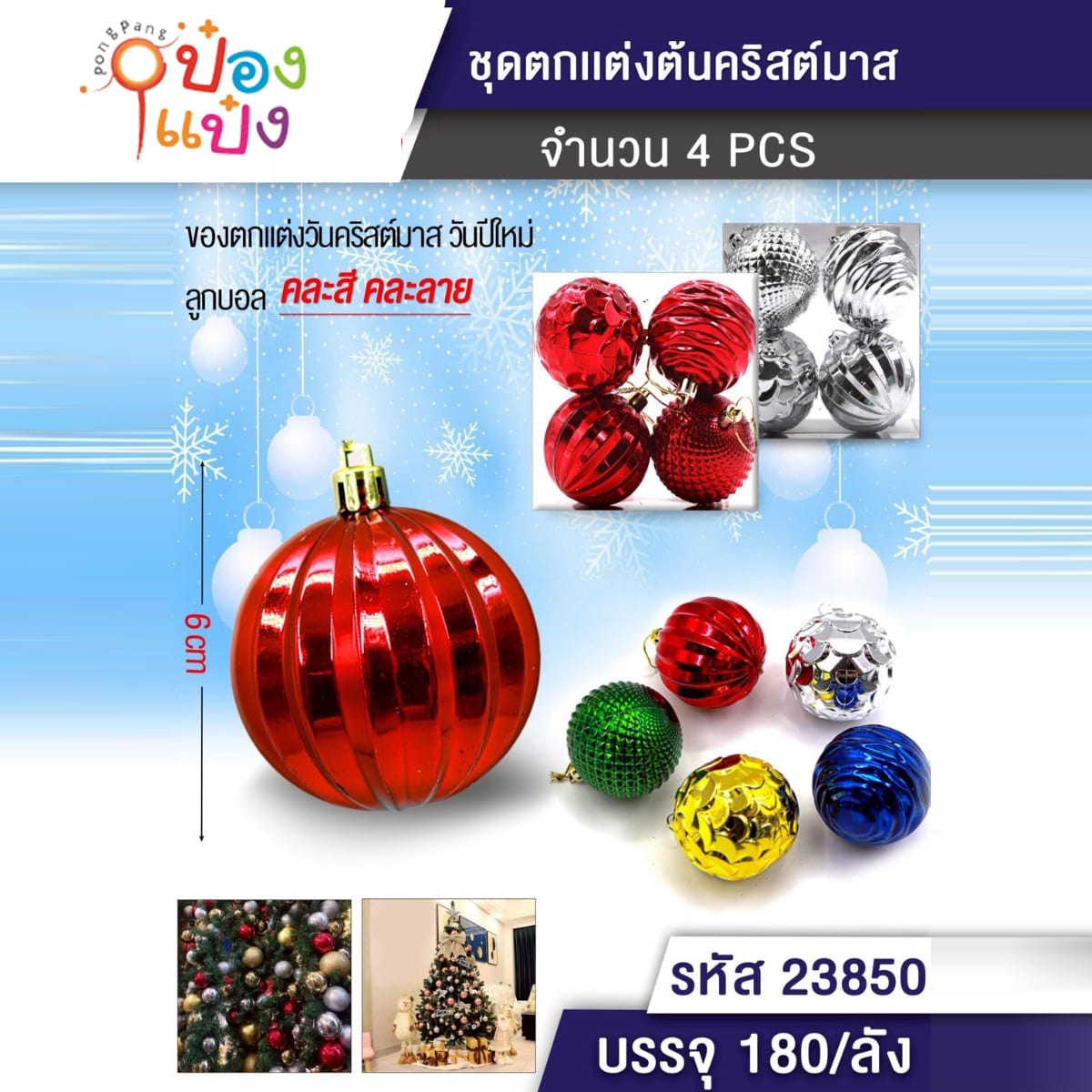 3493. (A124-T23850) ลูกบอลใหญ่คละแบบ 6CM 1x4 ตกแต่งต้นคริสมาส/ปีใหม่ 1*180