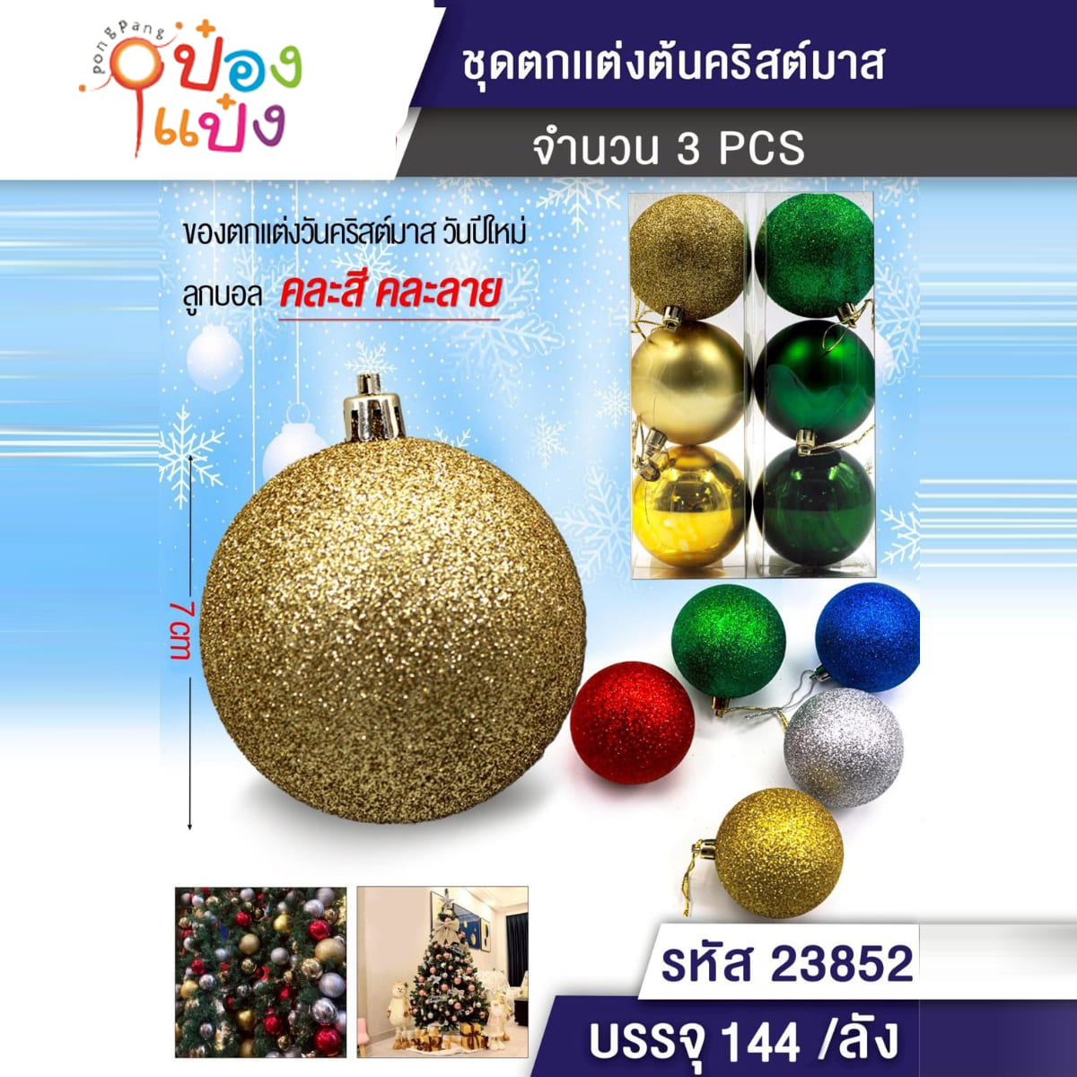 3494. (A124-T23852) ลูกบอลใหญ่คละแบบ 7CM 1x3 ตกแต่งต้นคริสมาส/ปีใหม่ 1*144