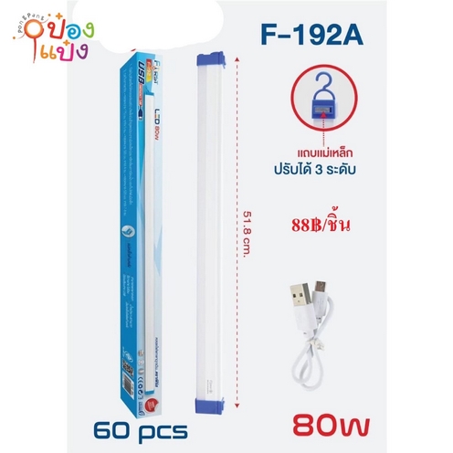 4153. (B211-F-192A) หลอดไฟ 80W LED 52x4.2CM เสียบ USB มี มอก 1*60 **106บาท/ชิ้น ขั้นต่ำ 3ชิ้น
