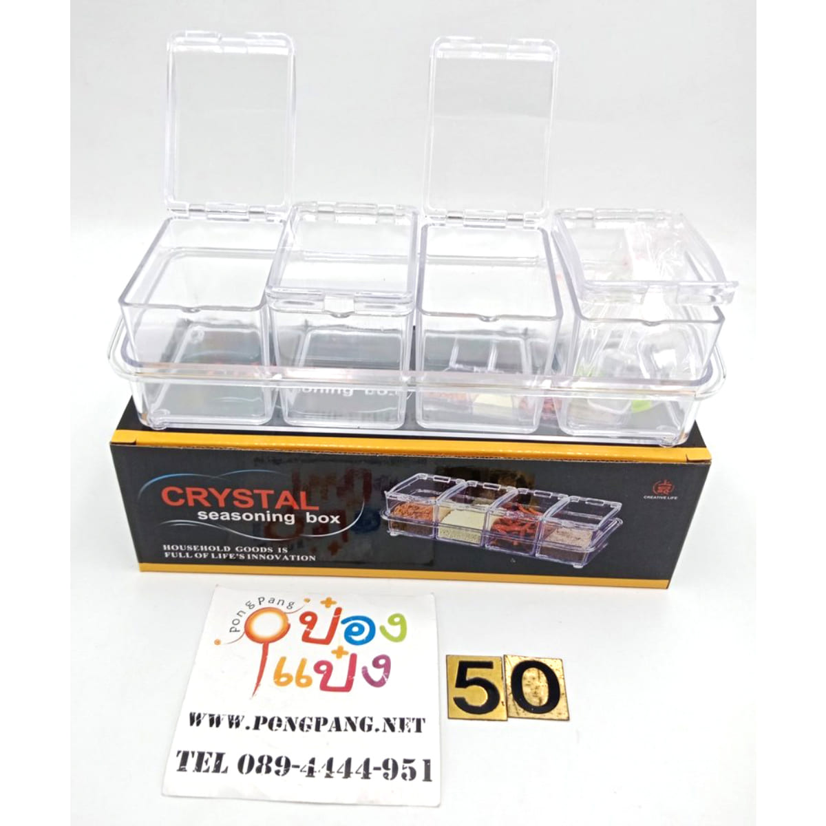 711. (B216-SBOO4) กล่องใส่เครื่องปรุง 4 ช่อง CRYSTAL กล่องใส + ช้อน