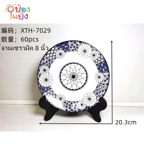 1214. (A112-XTH-7024) จานเซรามิค ลายคราม 8นิ้ว (1*60) **ขายยกลัง875บาท**