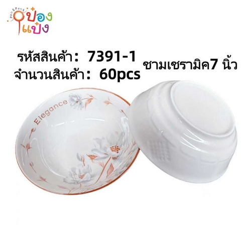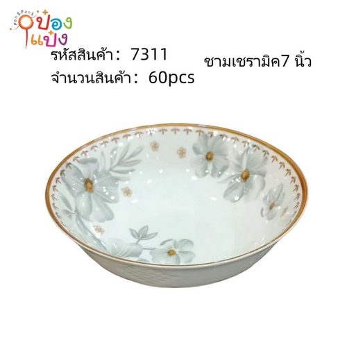 1252. (A112-XTH-7221) ชามเซรามิค 7 นิ้ว ลายดอก 1*60 **ขายยกลัง