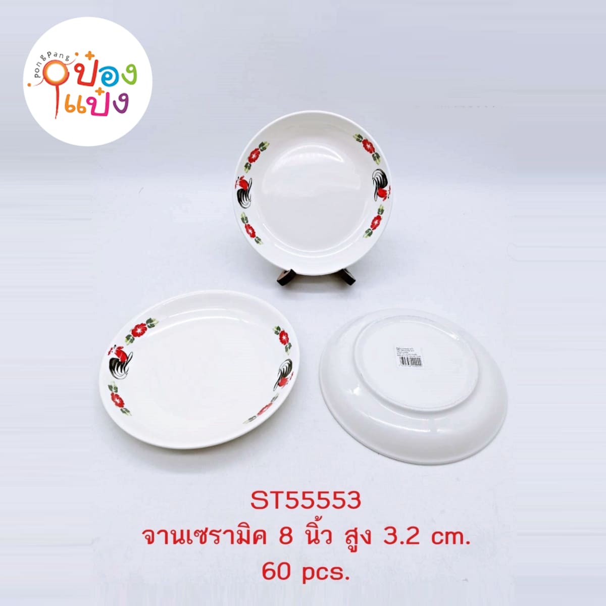 122. (A112-ST55553) จานเซรามิคขอบลายไก่ดอกไม้ 8นิ้ว สูง3.2CM (1*60) **ขายยกลัง