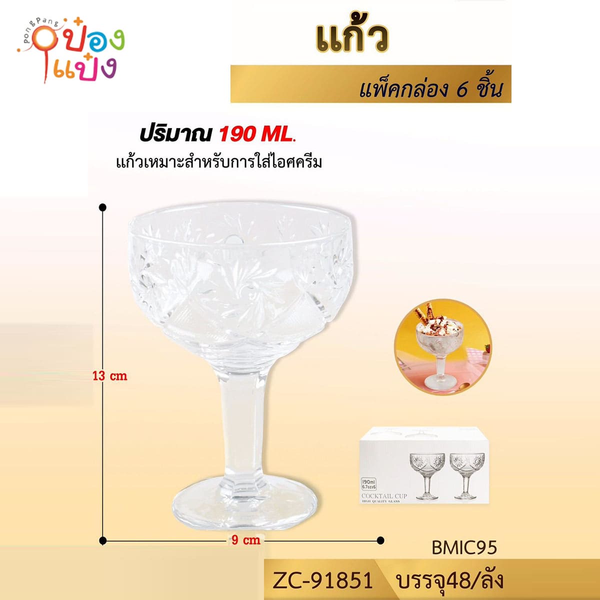 610. (A135-ZC92557) แก้วไอศกรีม 150ML ขนาด10x11 1*48