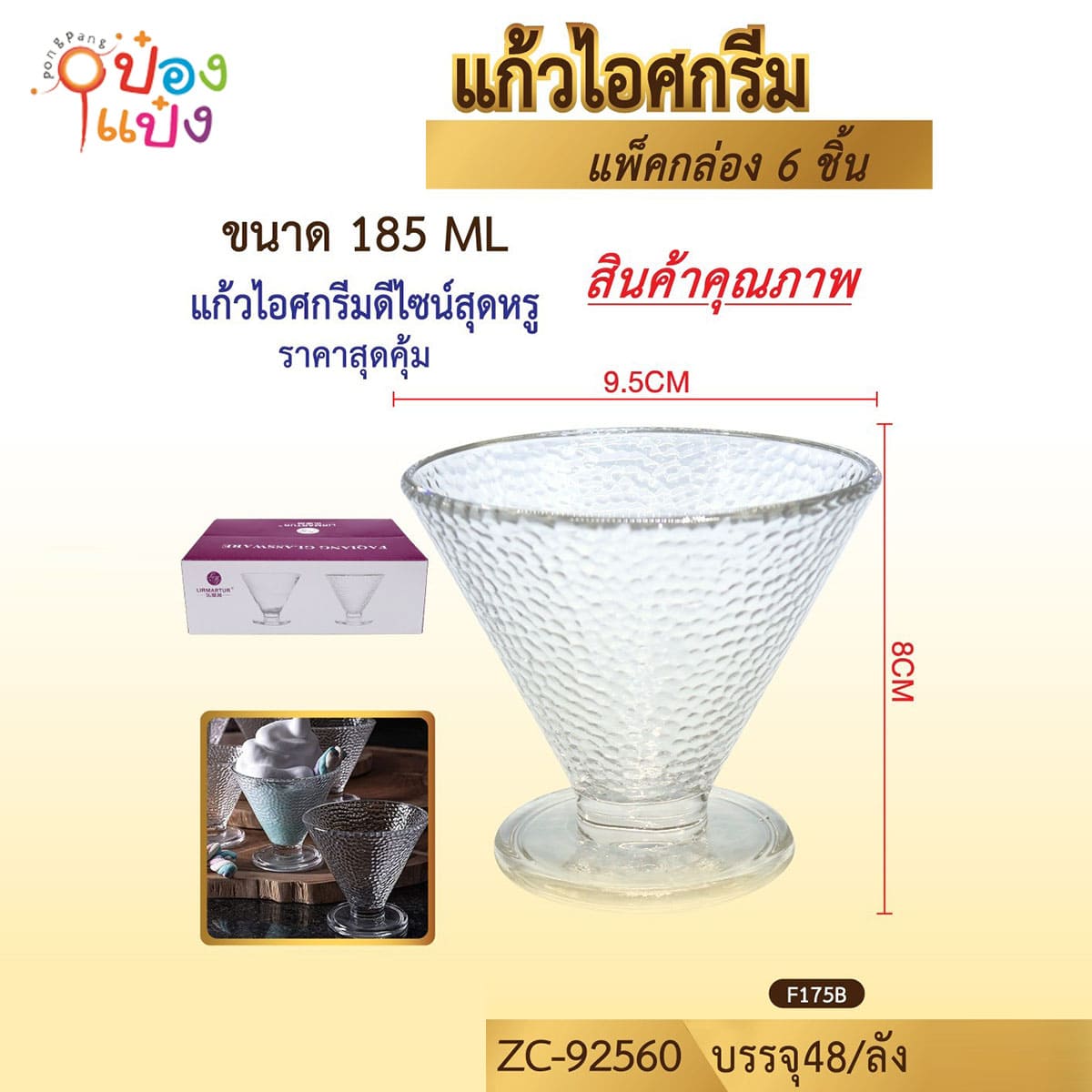 621. (A135-VG-GL1109) แก้วไอศรีม 150ML ปาก10CM ก้น6.2CM สูง9CM 1*72
