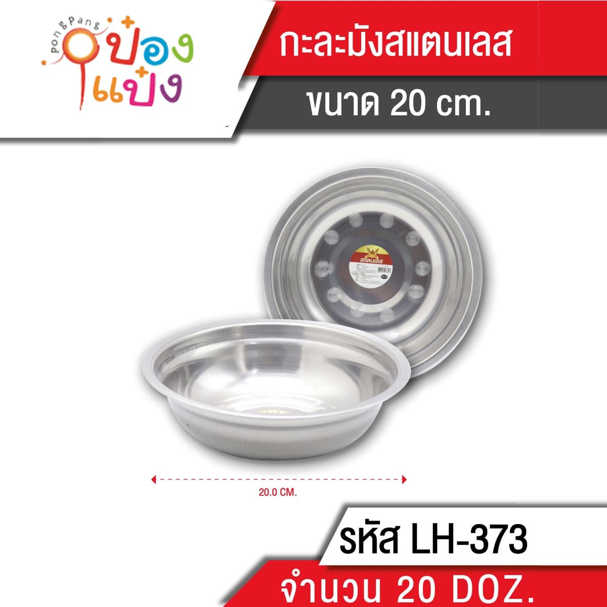 1073. (A290-LH6012-373) กะละมังสแตนเลส 20 cm. สินค้า 10บาท GT0340