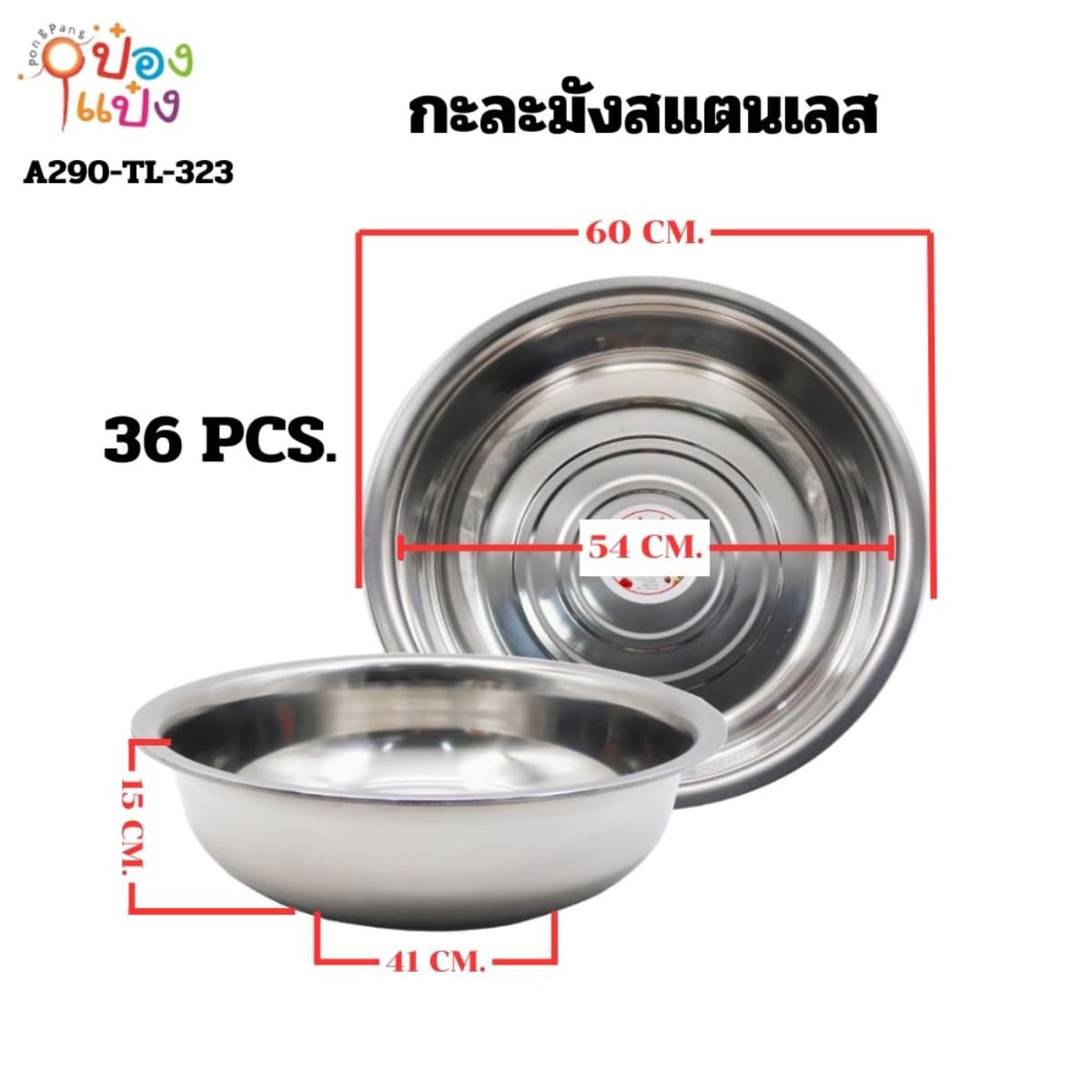 1064. (B209-LH6021-320) กะละมัง สแตนเลส 680g. แบบหนา 55cm. 80 บาท/ชิ้น ขั้นต่ำ 6 ชิ้น TP-B108-55