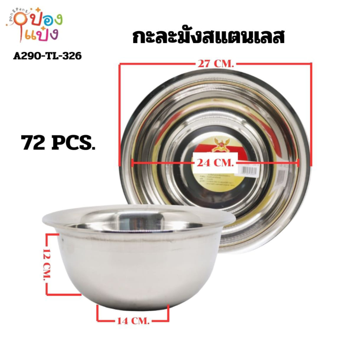 1078. (A290-LH6013-376) กะละมังสแตนเลส 26 cm. (1*144) LM KP-B376 B-126 P556 LM GT0041