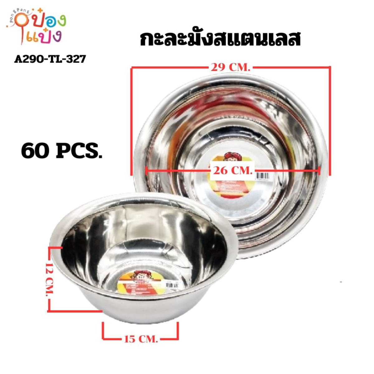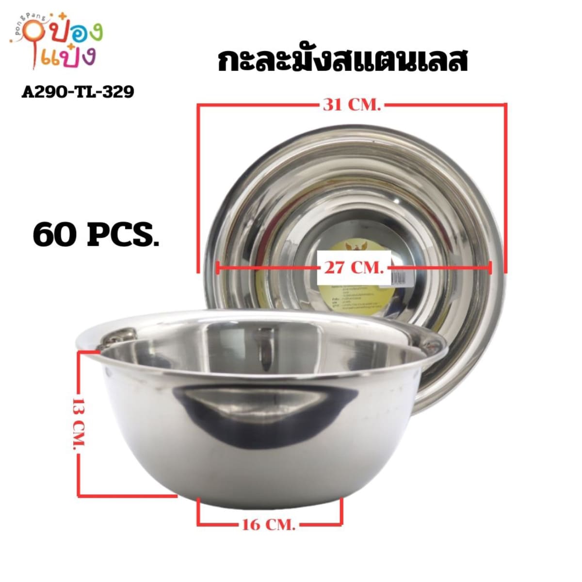 1085. (B209-LH6031-329) กะละมังสแตนเลส 32CM. ก้นลึก 60 บาท/ชิ้น ขั้นต่ำ 6 ชิ้น T329