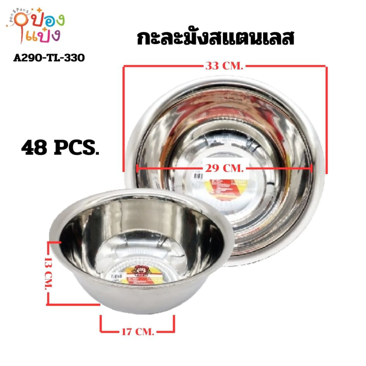 1086. (B209-LH6032-330) กะละมังสแตนเลส 34cm 75 บาท/ชิ้น ขั้นต่ำ 6 ชิ้น T330