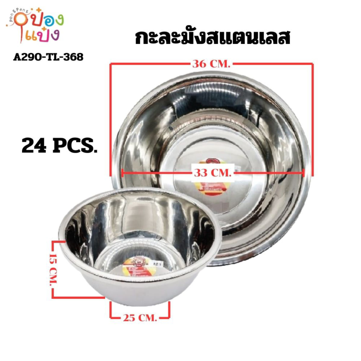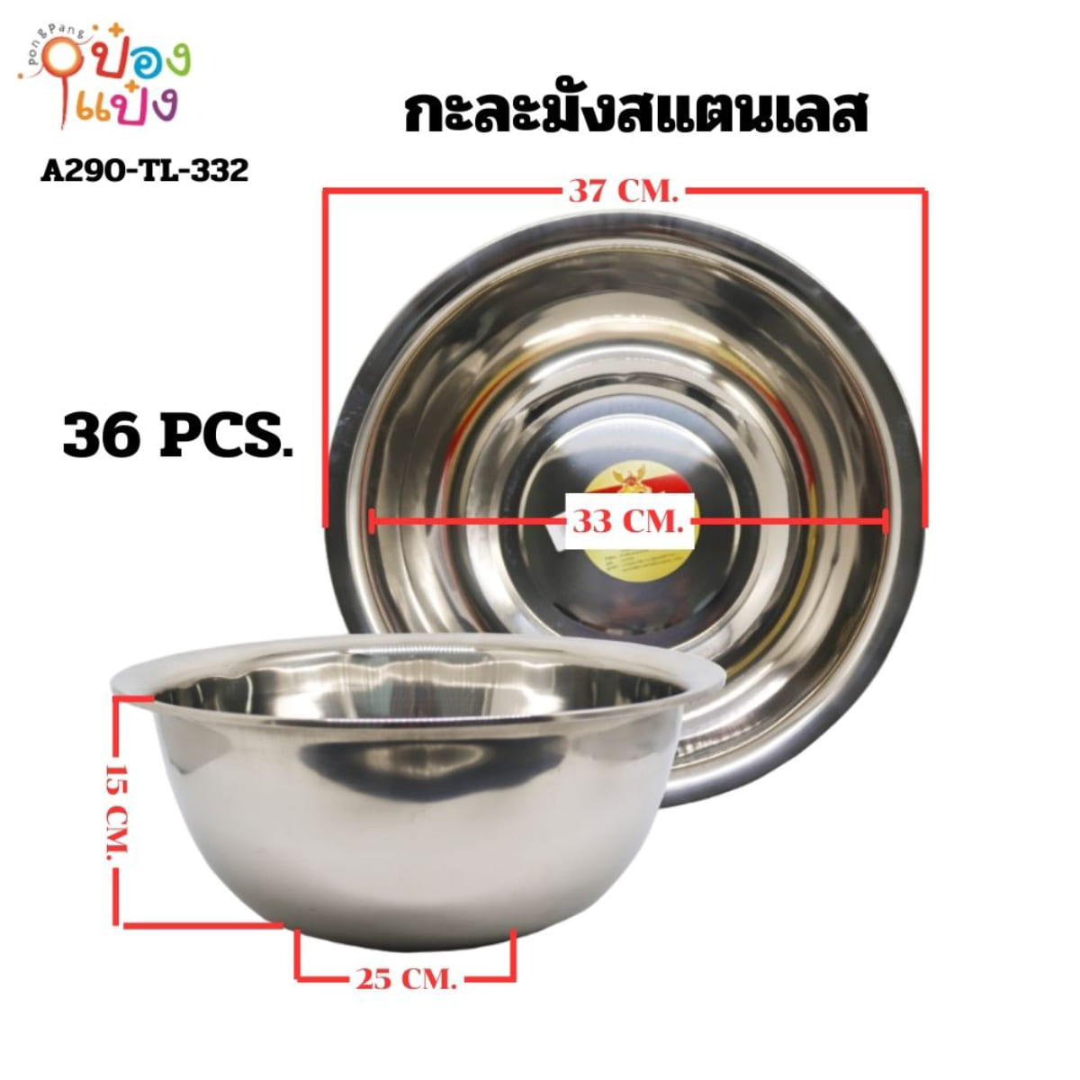1087. (B209-LH6033-331) กะละมังสแตนเลส 36cm 80 บาท/ชิ้น ขั้นต่ำ 3 ชิ้น T331