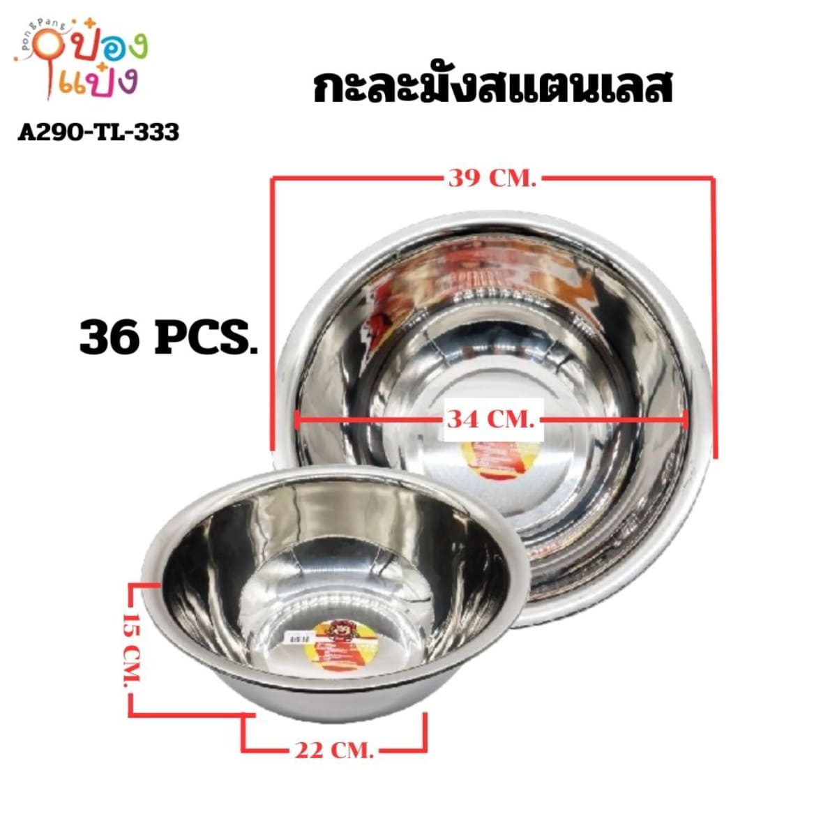 1091. (B209-LH6035-333) กะละมังสแตนเลส 40CM ปาก39CM ก้น22CM สูง15CM ** 90 บาท/ชิ้น ขั้นต่ำ 3 ชิ้น T333