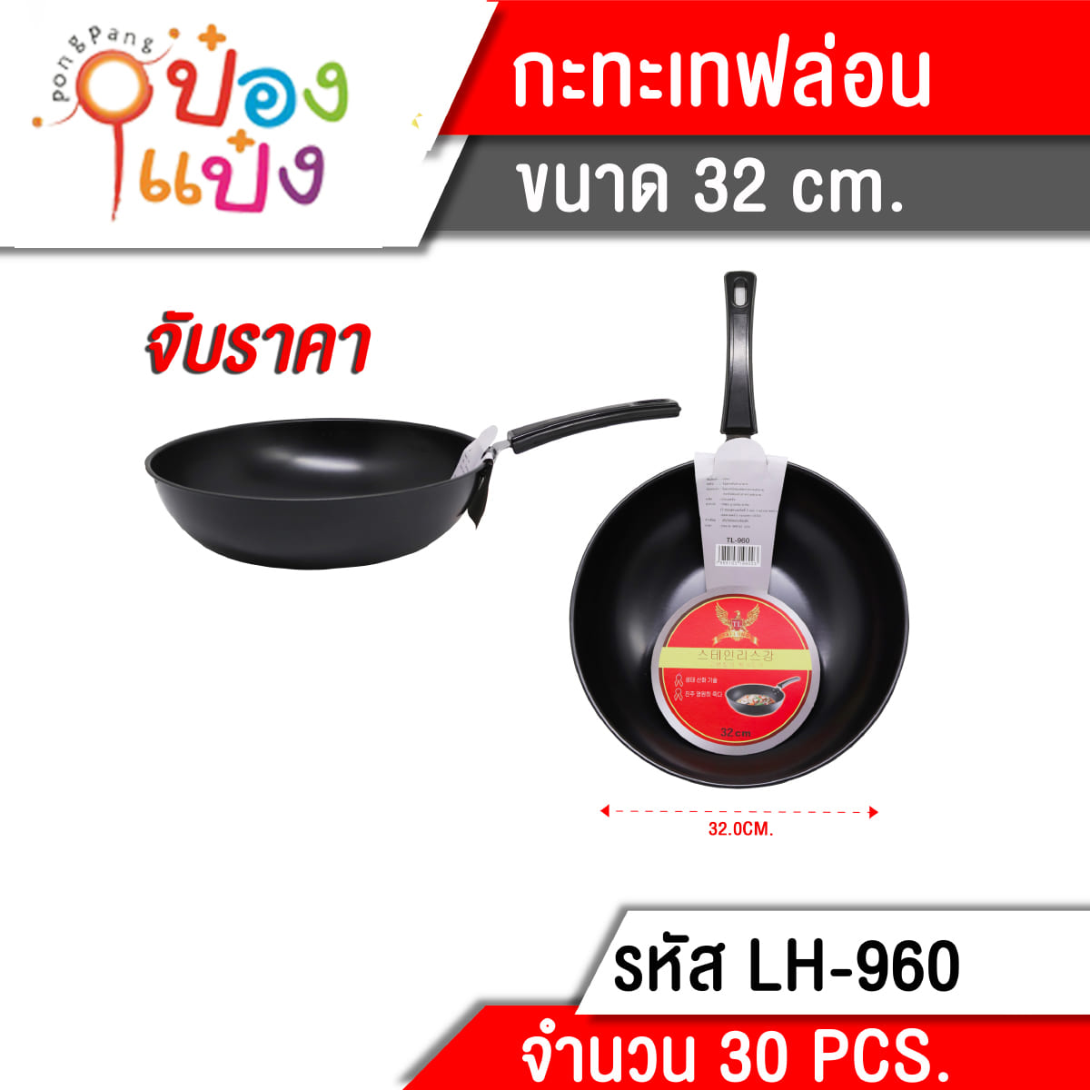 1022. (B209-LH6371-960) กระทะเทฟล่อน 32ซม.**85บาท/ชิ้น ชั้นต่ำ 3 ชิ้น T960 GT0053