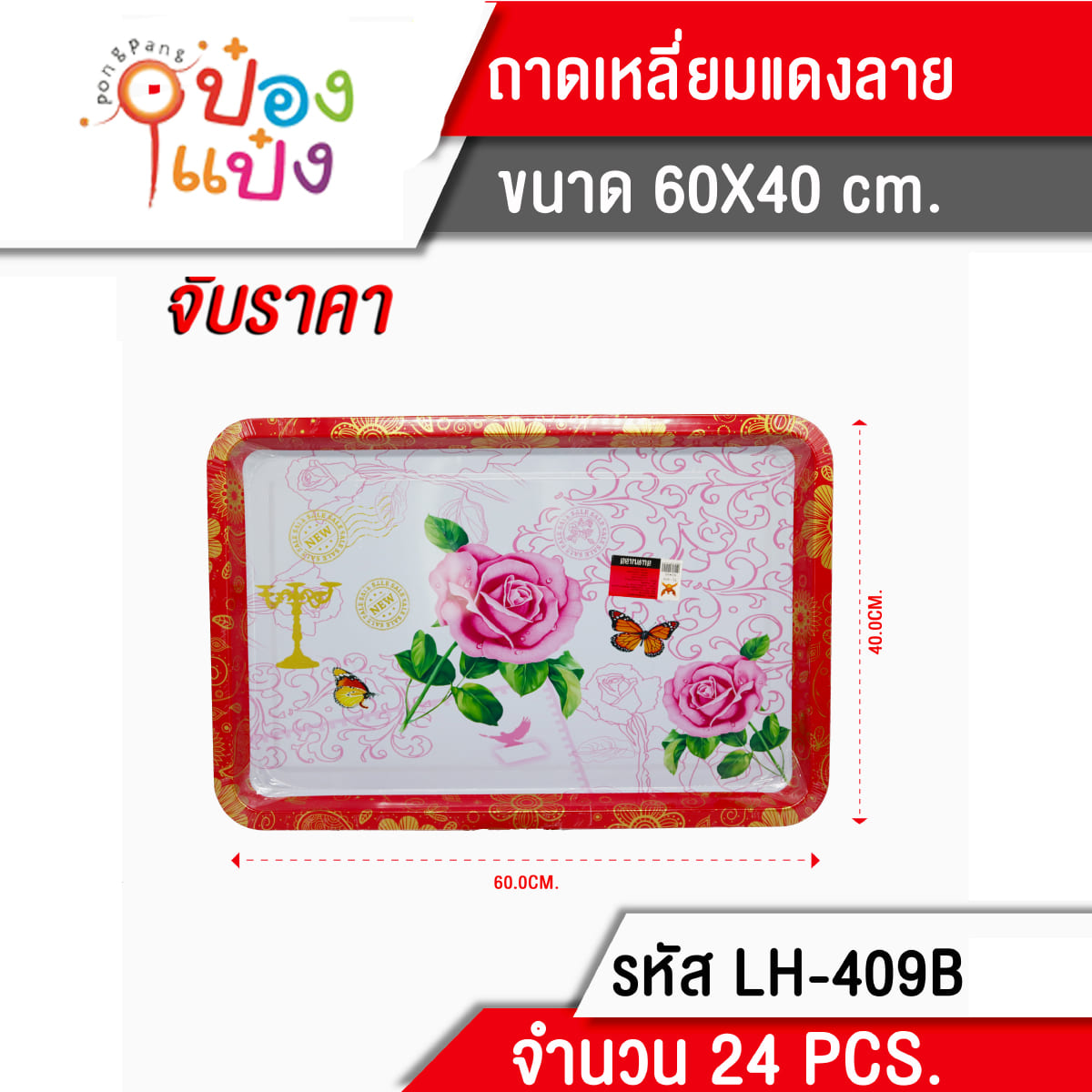 1274. (B209-LH4013-409B) ถาดเหลี่ยมแดง ลายกุหลาบ 60x40CM 1*24 **75บาท/ชิ้น ขั้นต่ำ 6ชิ้น* TL-409B