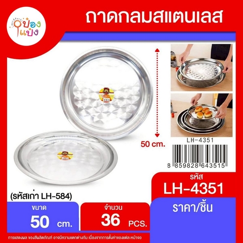 1241. (B209-LH4356-598) ถาดกลมเคลือบขอบเลส 50cm. ถาดวัด **65 บาท/ชิ้น ขั้นต่ำ 6 ชิ้น LH4356