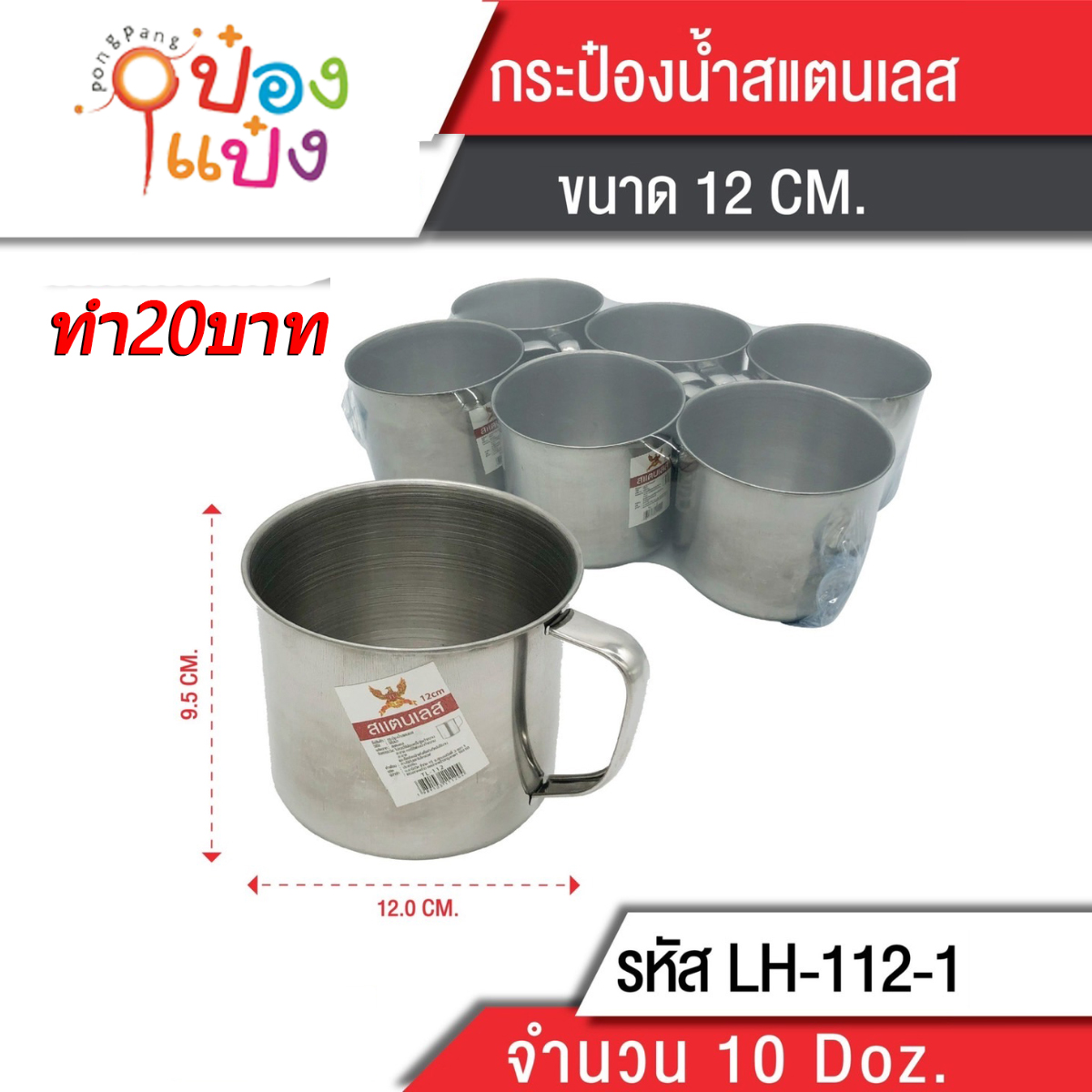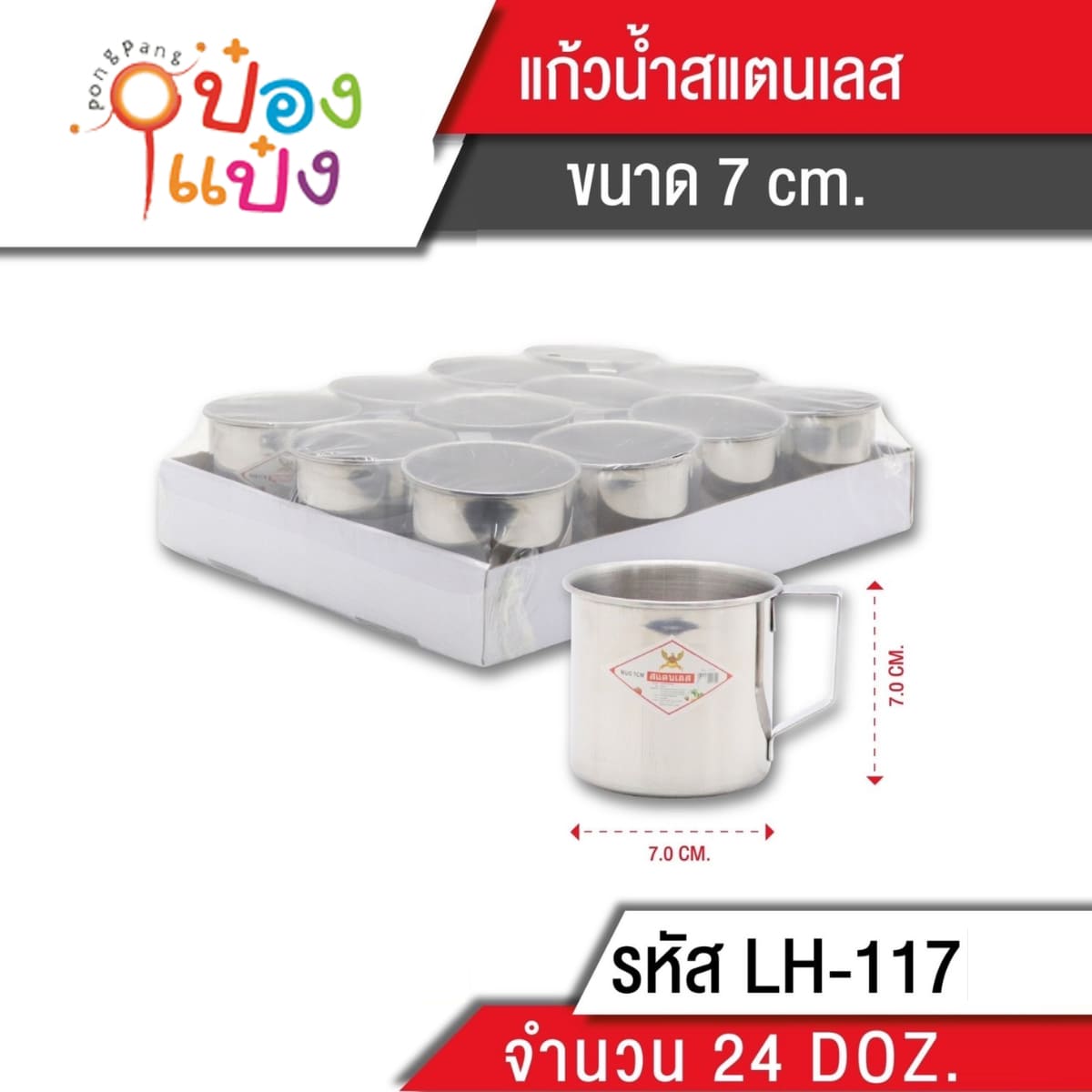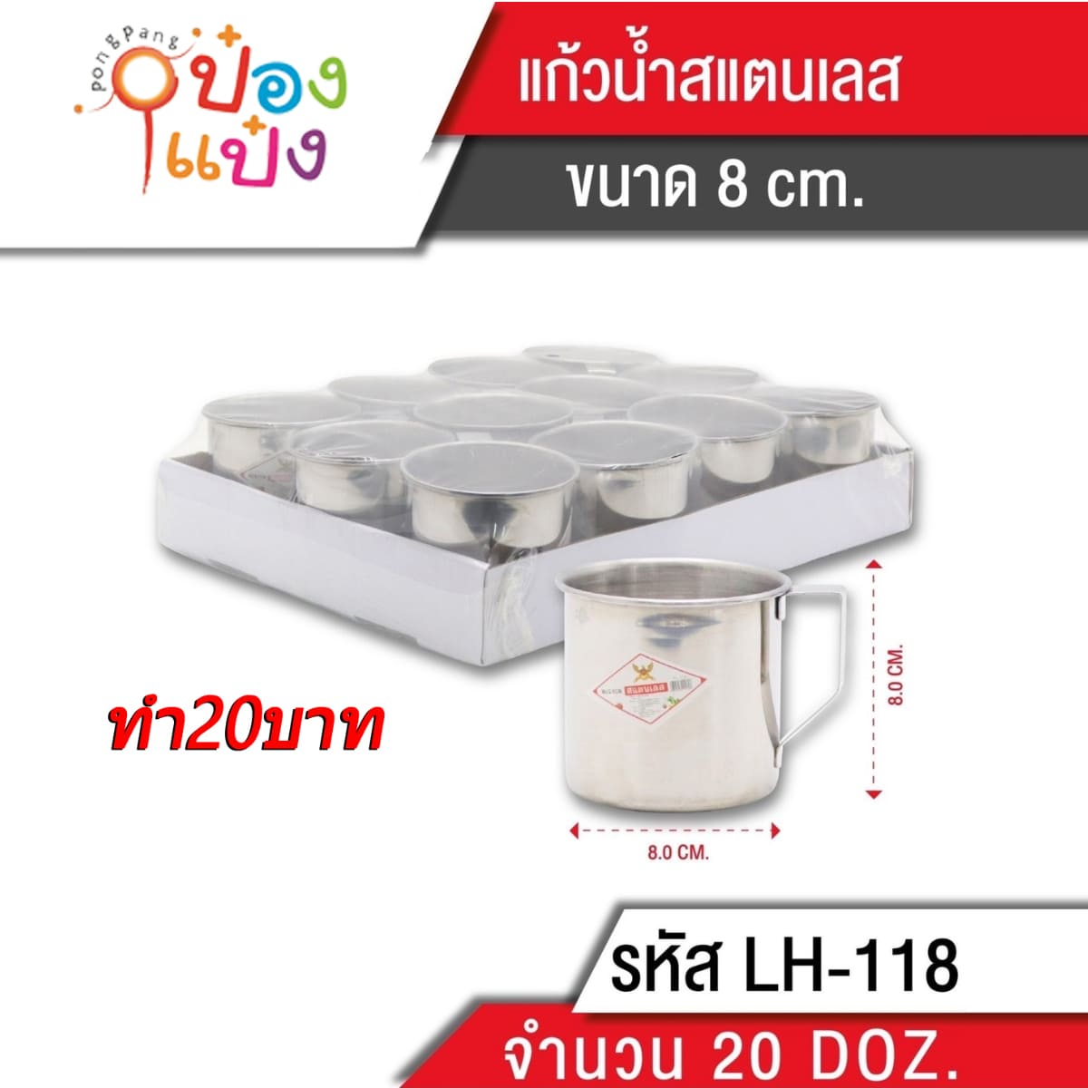 1373. (A291-LH7500-108) แก้วน้ำมีหูสแตนเลส 8cm. แบบบาง 40g. 1*240 P536 สินค้า10บาท Q-K63 Q-K62 GT0045 JSB-KGS-01T