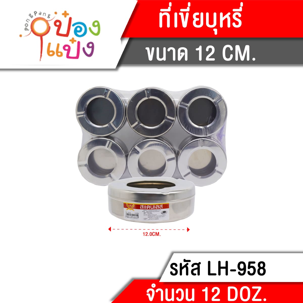 1305. (A291-LH8155-958) ที่เขี่ยบุหรี่ สแตนเลส 12 cm. (1*144) T958