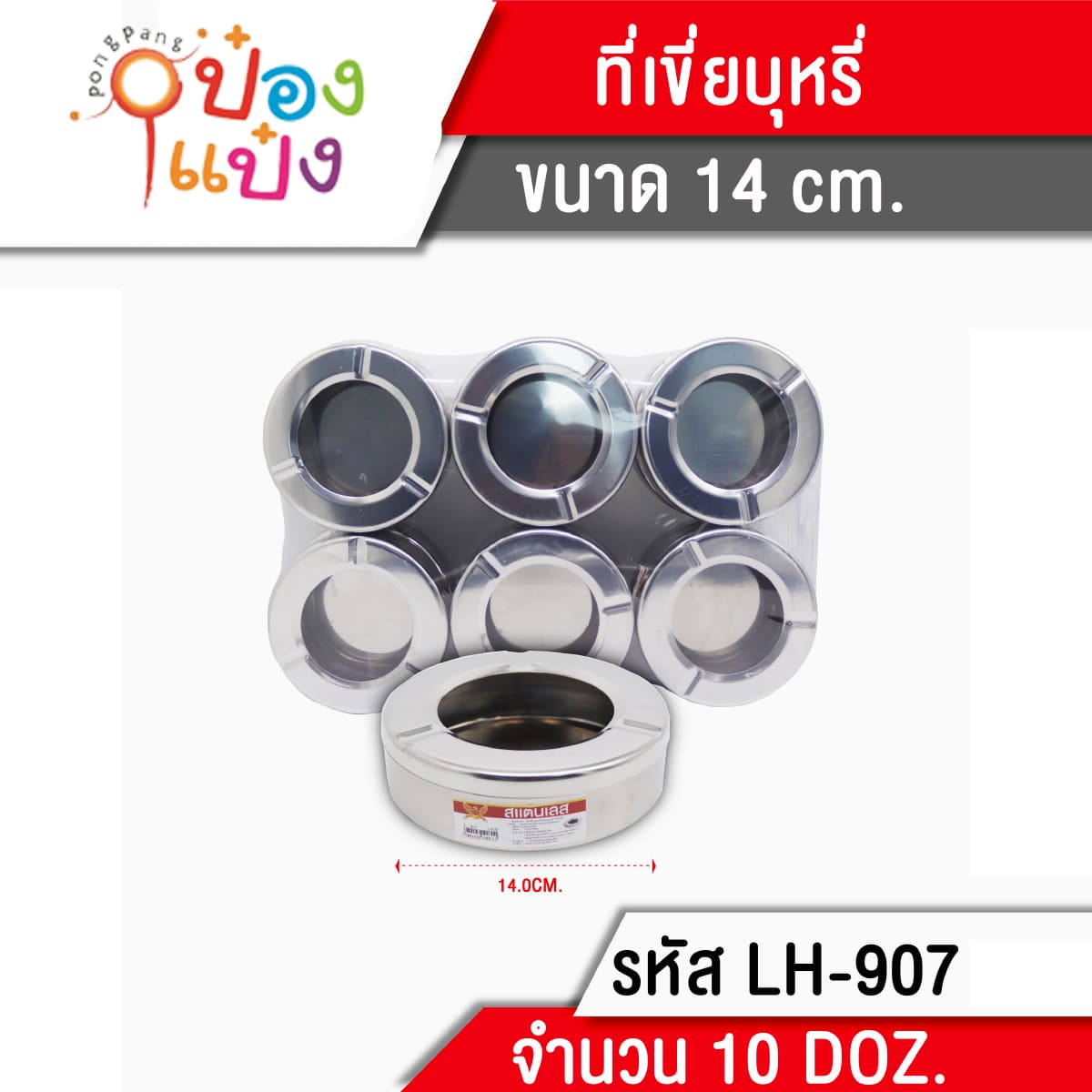 1306. (A291-LH8156-907) ที่เขี่ยบุหรี่ สแตนเลส 14cm. 1*120 T907