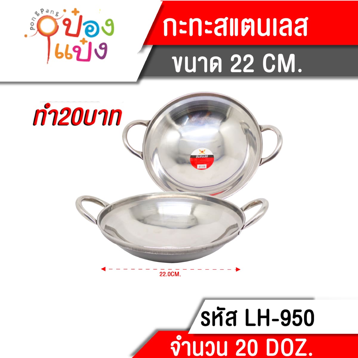 1338. (A291-GO-B1108) หม้อชาบู มีหูจับ 105g. 22cm. (1*240) TL-950