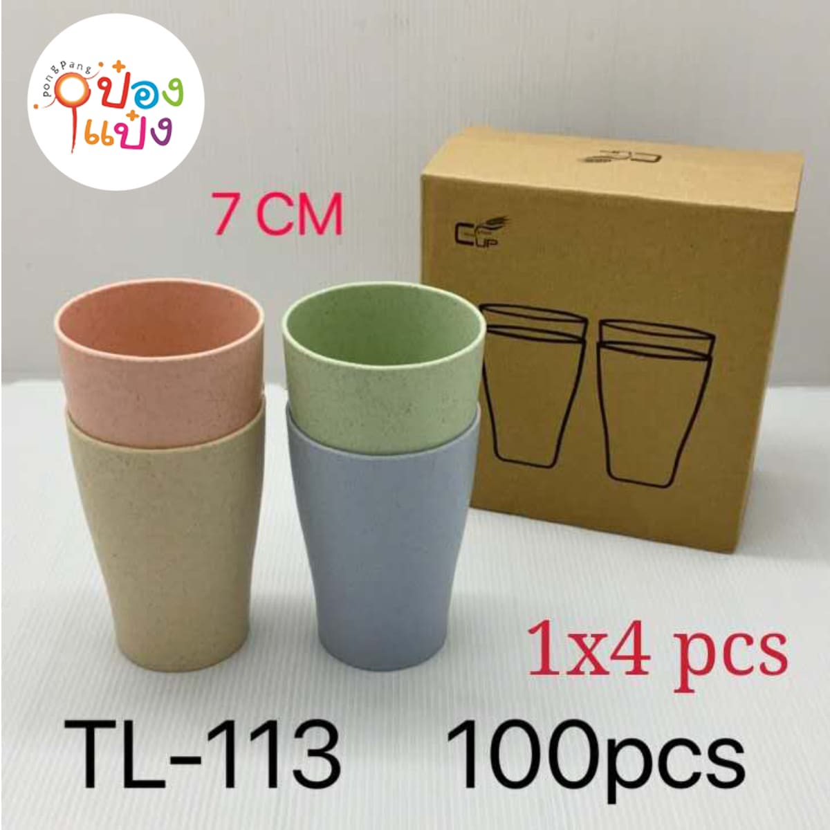 1368. (B209-LH113) แก้วน้ำพลาสติก ลายหิน แพ๊ค4ใบ 7cm. คละสี (1*100)