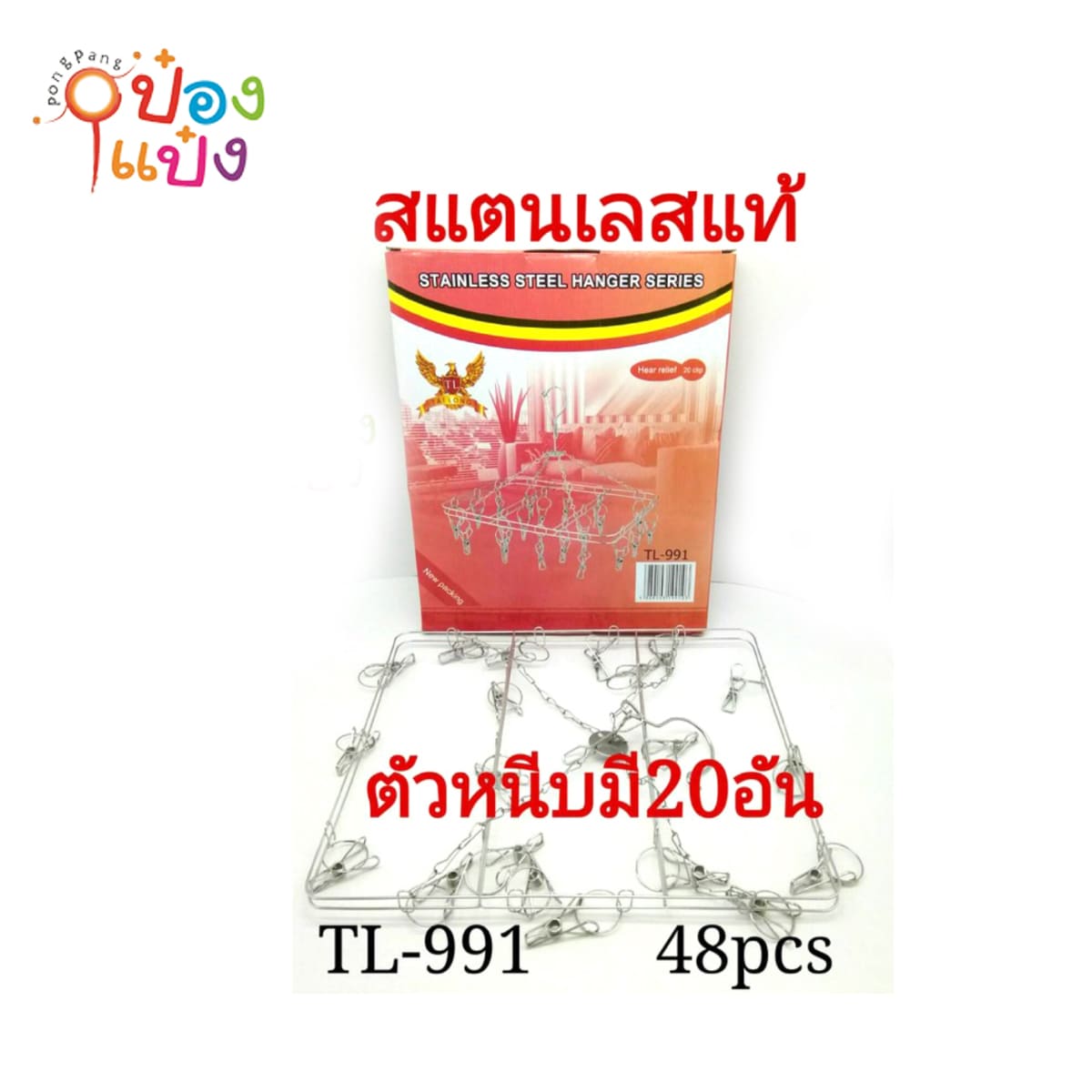 1323. (B209-LH8102-3441) พวงตากผ้าเลสหนีบ เหลี่ยม20กิ๊บ 30x24CM.(1*100) 40 บาท/ชิ้น ขั้นต่ำ 6 ชิ้น S-MH30 TP-H150