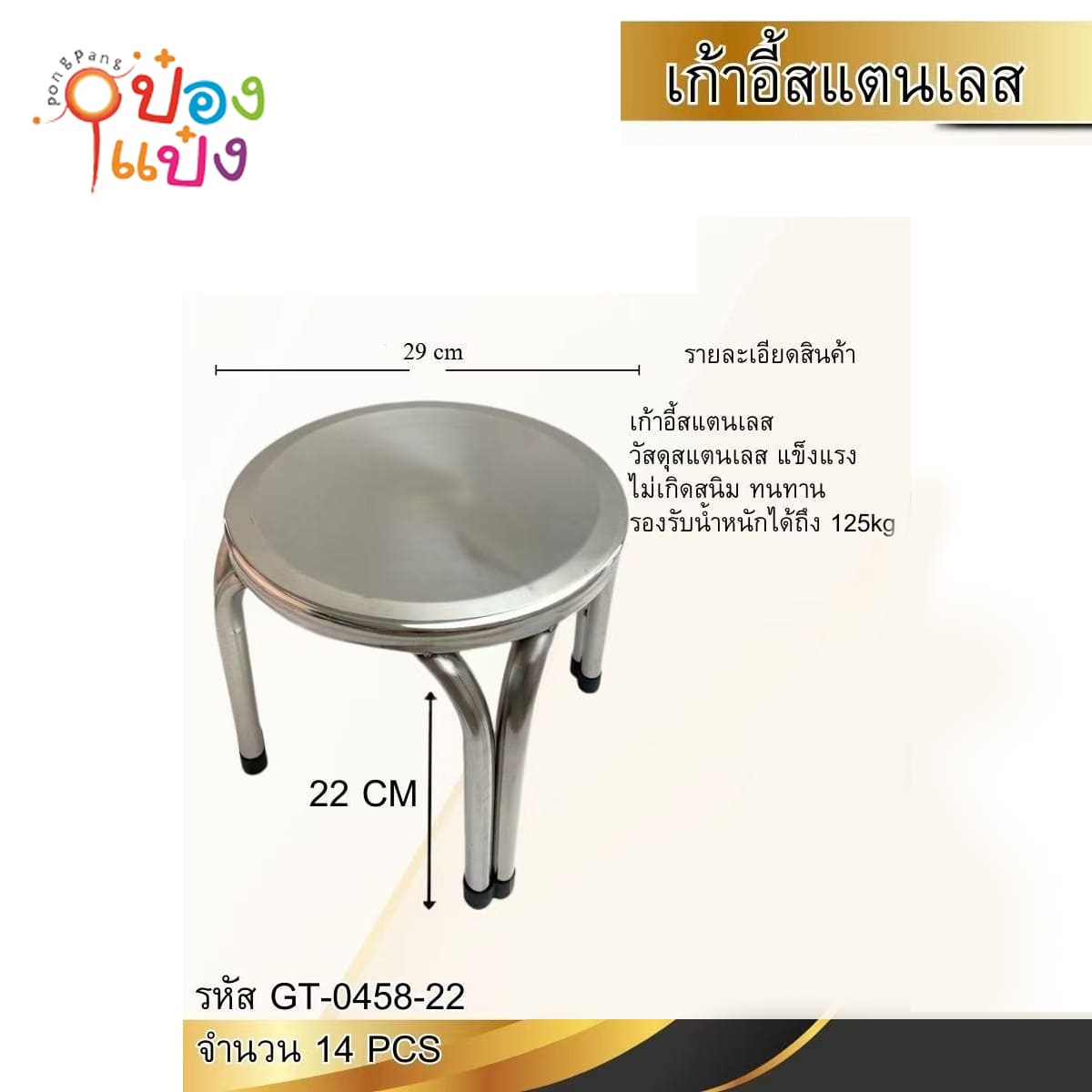 1363. (B224-CNB-22-1) เก้าอี้ หัวกลม (ทรงเตี้ย) สแตนเลส 22 cm. (1*12)