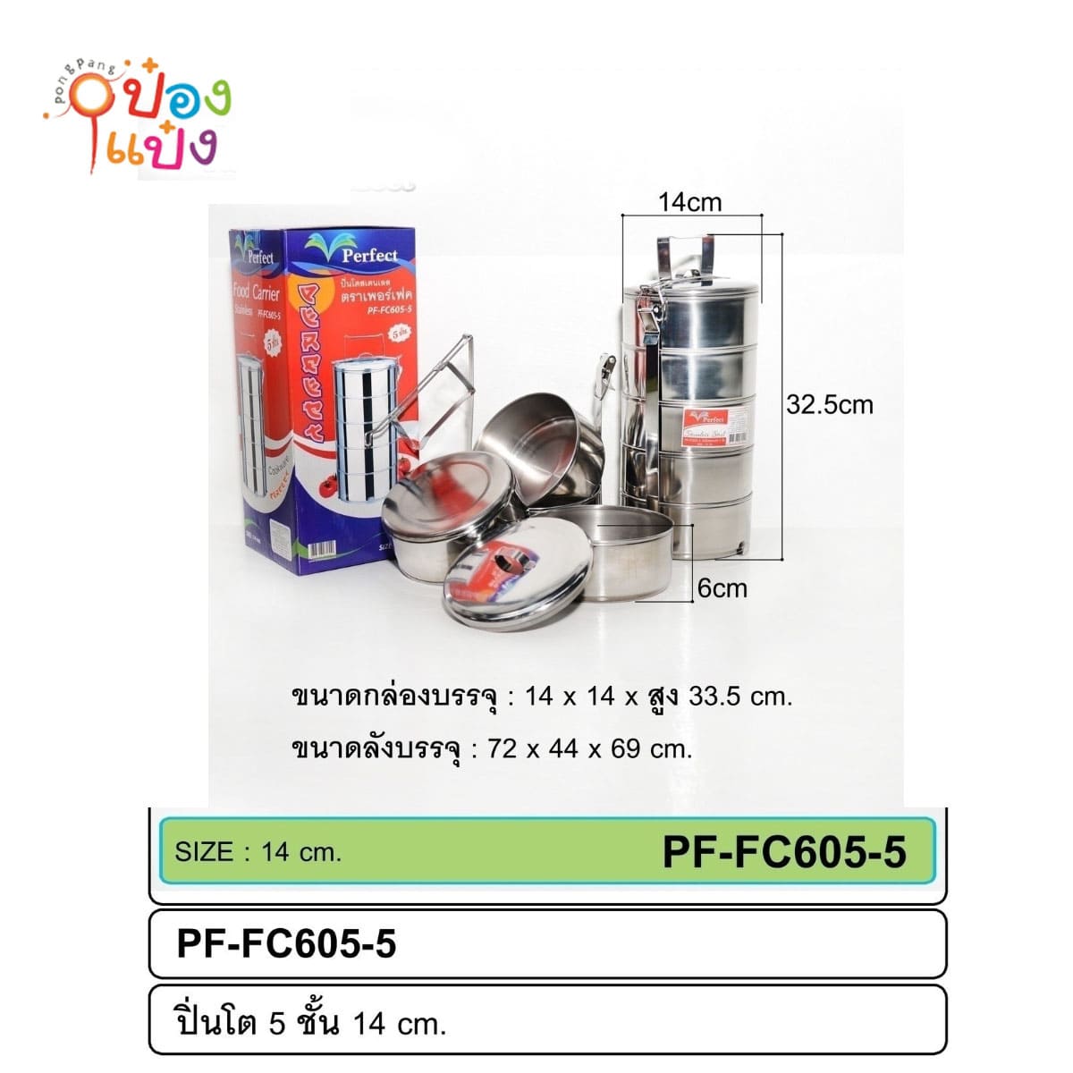 1319. (B224-TP-FC605-5) ปิ่นโตสแตนเลสกลม 5 ชั้น 14x14x33.5 (1*30)