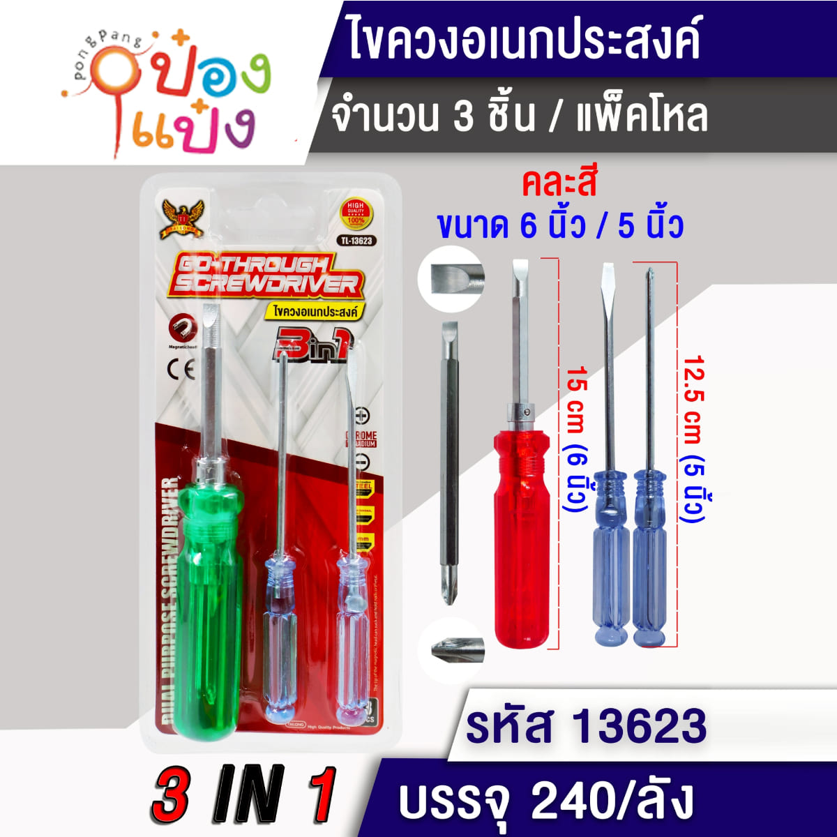 564. (B110-T13623) ไขควง 1x3 สลับหัว6นิ้ว1+แบน5นิ้ว1+แฉก5นิ้ว1 1*240