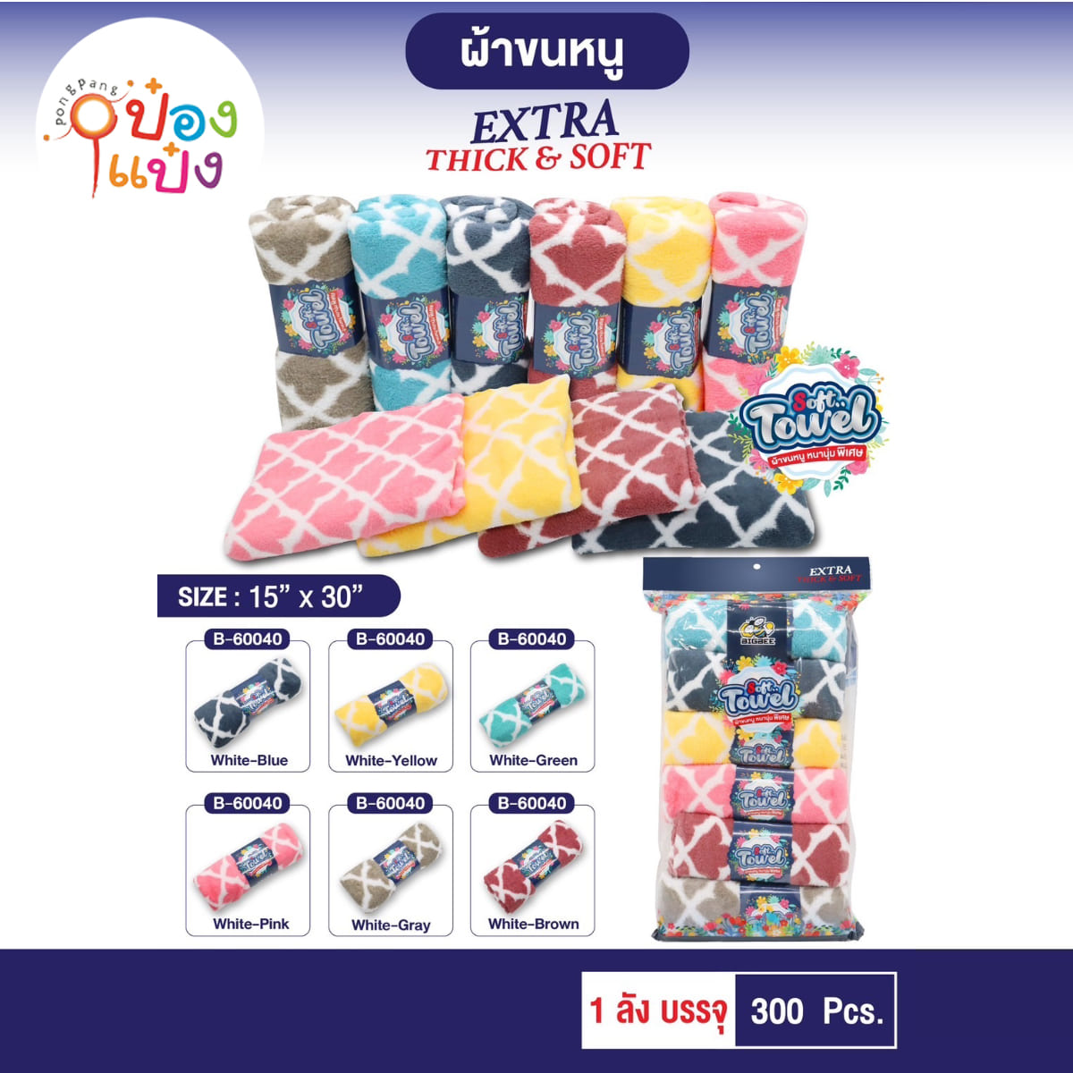 983. (A108-ML-60007) ผ้านาโนม้วนลายจุดใหญ่ 15x30 นิ้ว คละสี 1*300