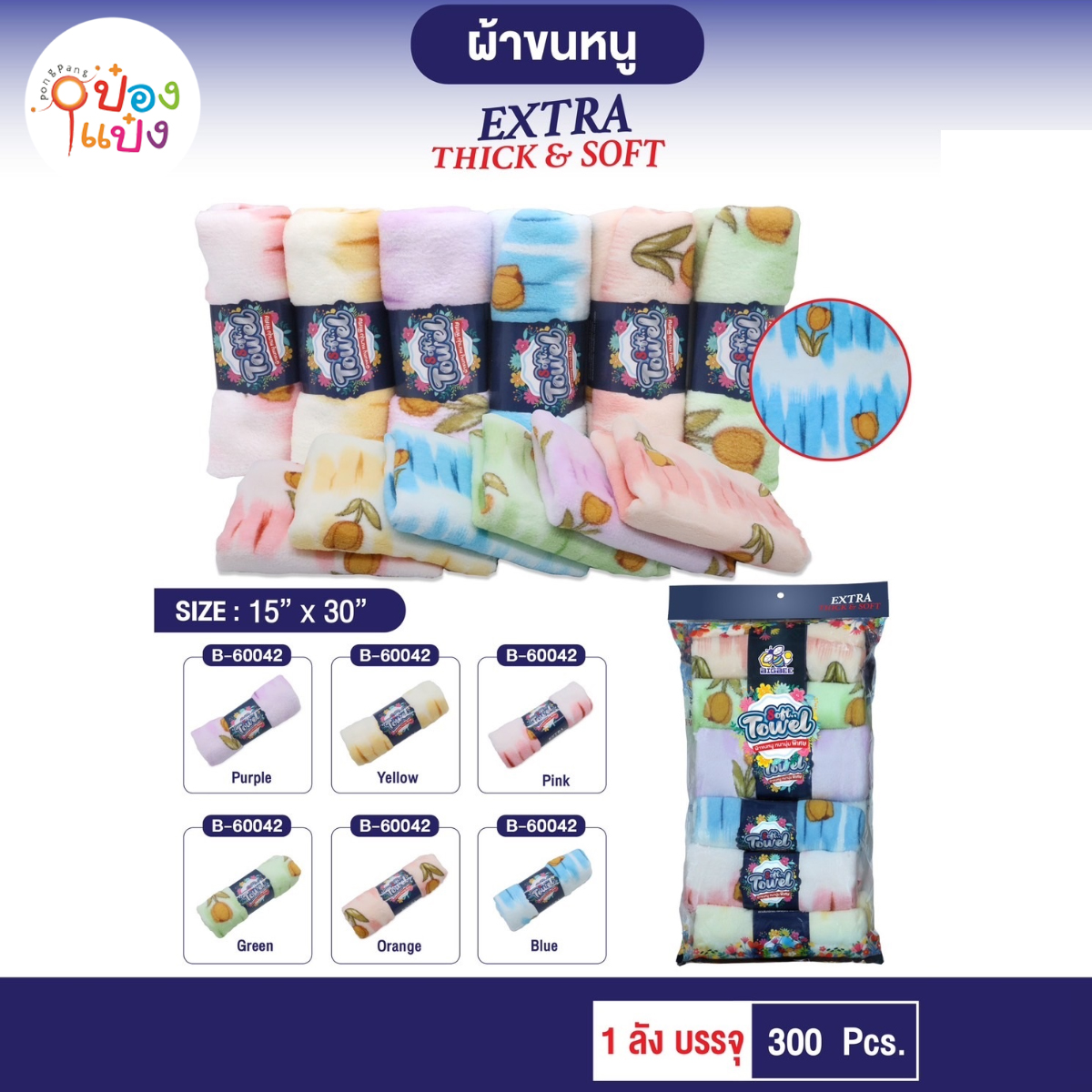968. (B462-T16850) ผ้าคลุมผมอาบน้ำ 58CM 1*480