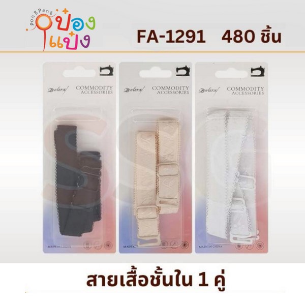 1272. (B401-SG-FA1291) สายเสื้อในยางยืด แพ็ค1คู่ คละสี 1*480