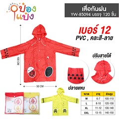 1501. (B458-YW85098) เสื้อกันฝน 15-16ขวบ ไซต์ XXXXL คละสี 1*120 **92บาท/ชิ้น ขั้นต่ำ 6ชิ้น