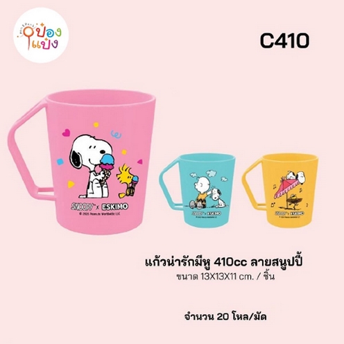 1918. (B236-EC-C410) แก้วน้ำมีหูสนูปี้ 410CC 13x13x11CM Snoopy คละสี 1*240