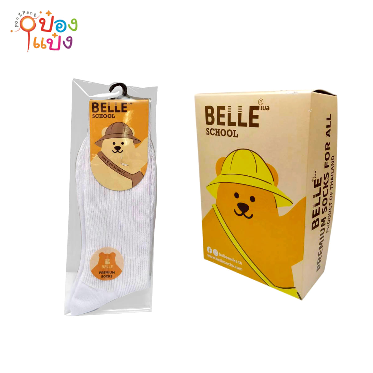 2077. (A267-NB-Belle-W9-12) ถุงเท้าไนล่อน ข้อยาว สีขาว ฟรีไซร์ 9-12 Belle 1*12 (กล่อง)